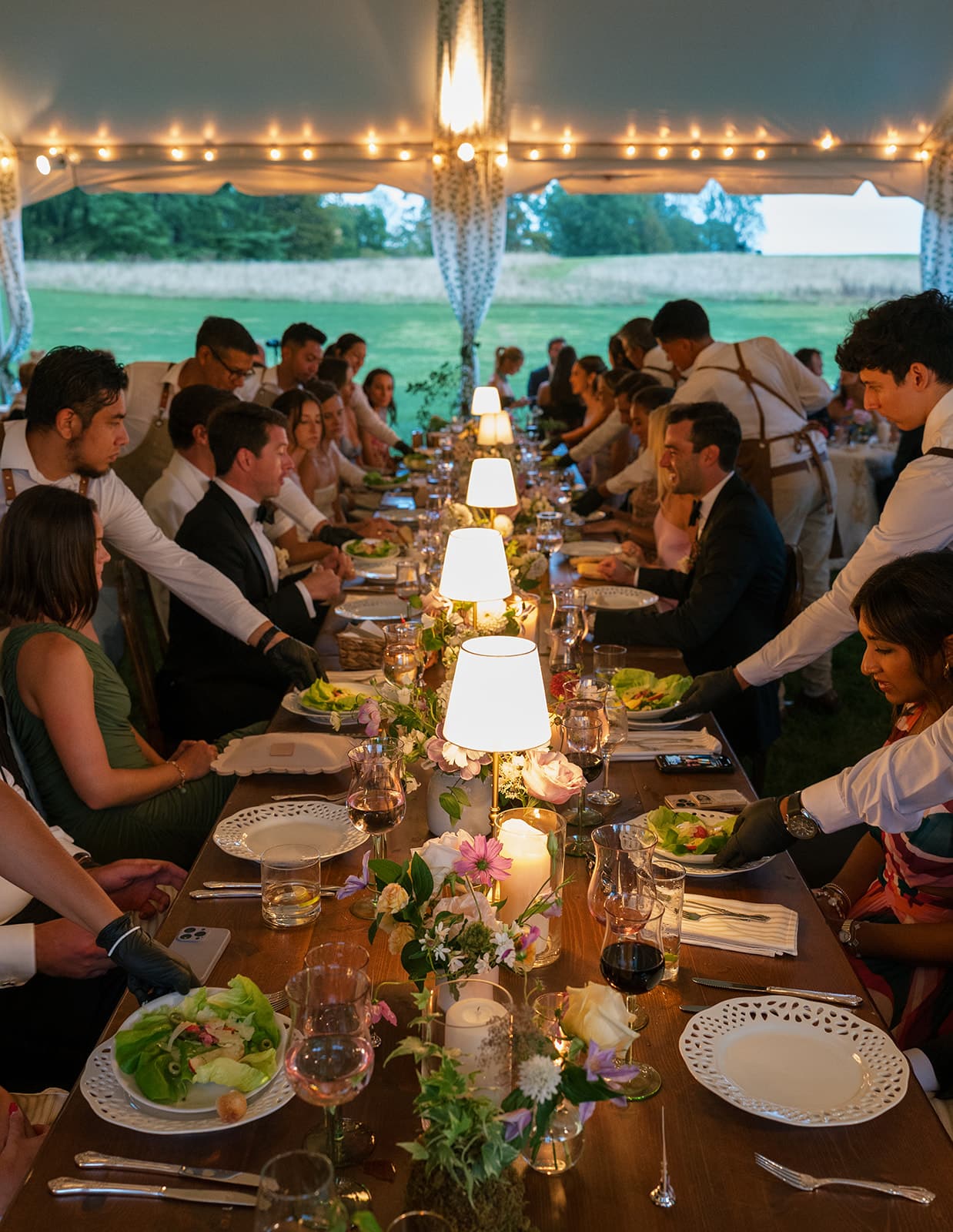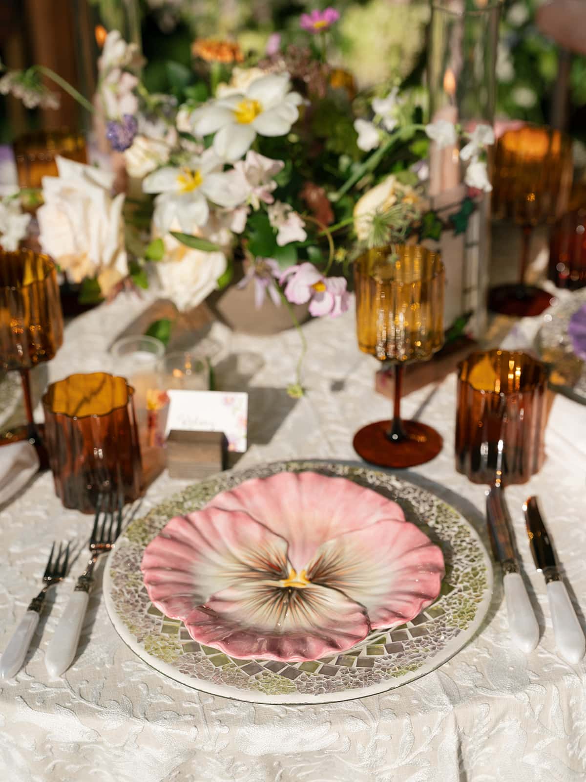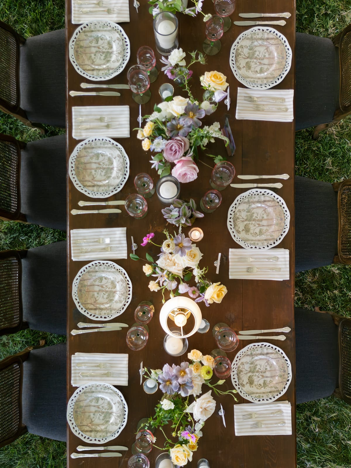 An evening wrapped in beauty and light. We adored the way this setting mixes dinnerware styles to create something so unique. After all, why settle for one when you can have it all?