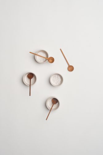 teak spoon and white salt cellar for rent for weddings and special events in charlottesville virginia