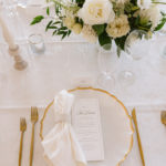 Our Baroque Charger Plate brings a hint of glamour to your event. Available in pearlescent white with a gold rim. Also available in salad plate size.
