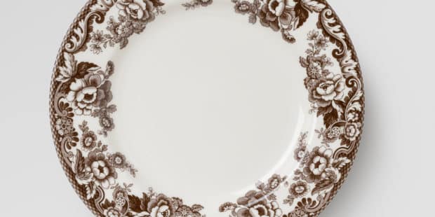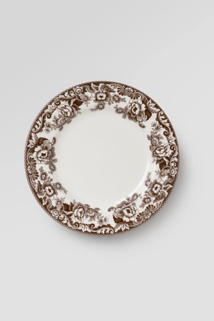 The Charlotte features a historic British flower border, which dates back to 1831. The beautiful intertwining border of flowers and scrolls in a rich brown, create a beautiful traditional setting with hints of cottage core.