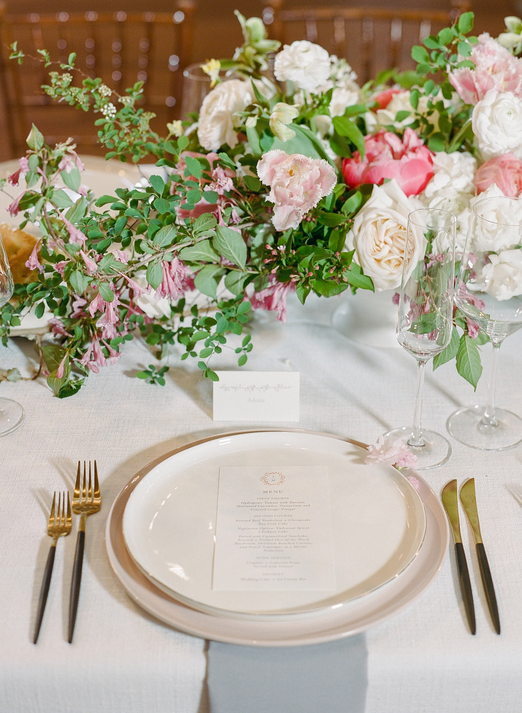 charlottesville-virginia-party-rental-store-emerson-james harper pink charger plate pippin hill farm wedding just a little ditty event planning southern blooms floral design black and gold flatware