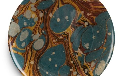 This unique pattern is inspired by the traditional marbled end papers found in old books.