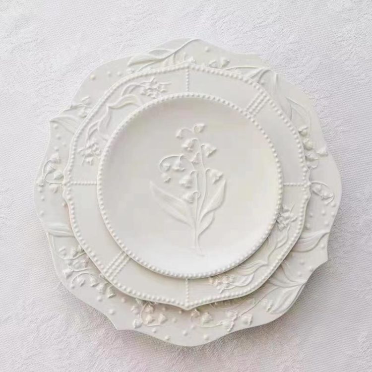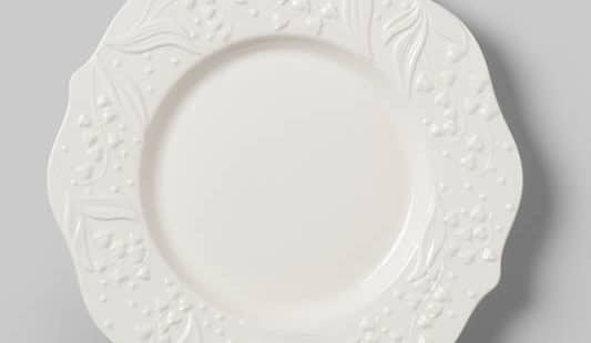 White porcelain, lily of the valley pattern.