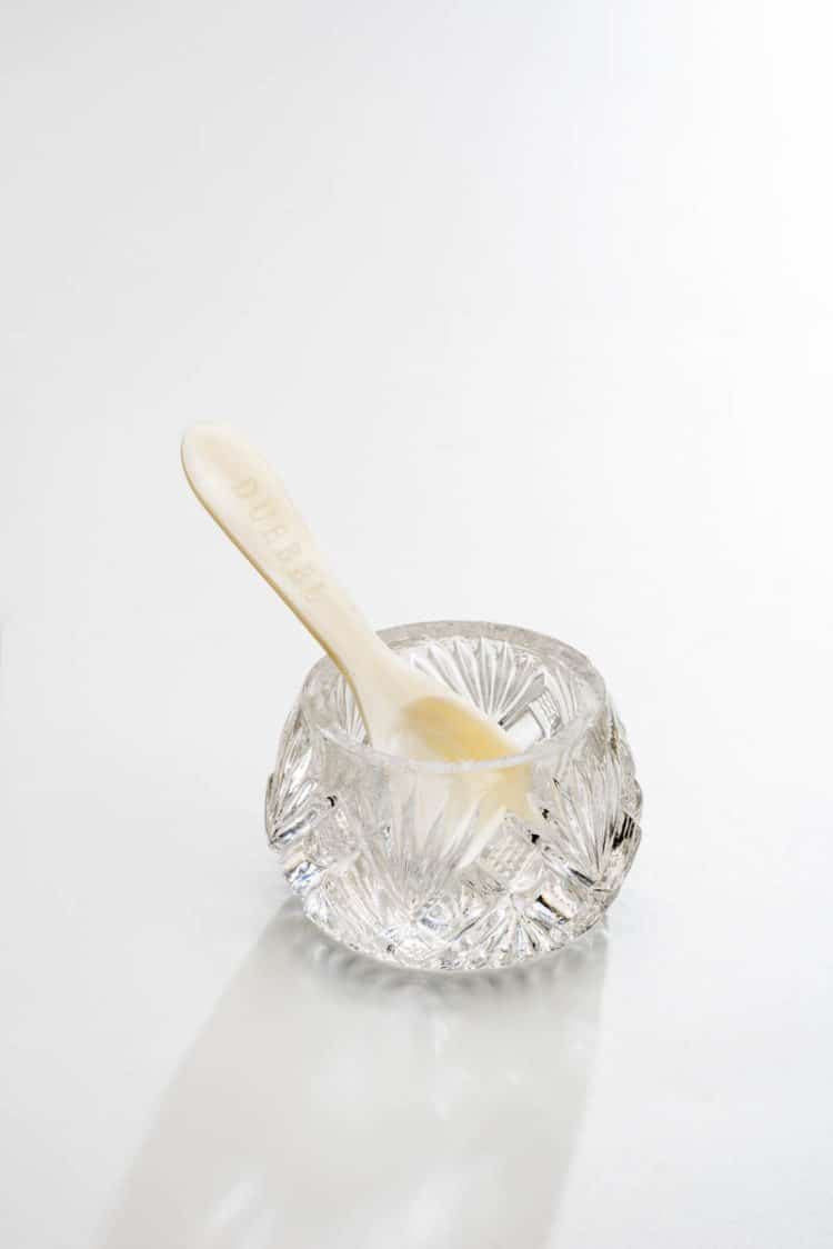 Mother of pearl salt spoons to compliment our vintage salt cellars and the table.