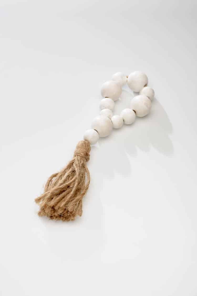 Handmade with whitewashed wooden beads and a tassel gather, this little detail appeals from coast to coast.