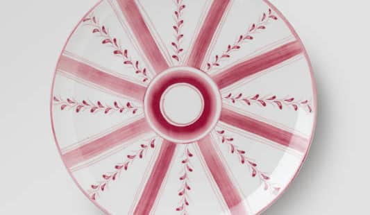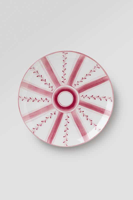 Bedecked with alternating stripes of ribbon and garlands of florals, this collection offers a romantic take on classic painted dinnerware.