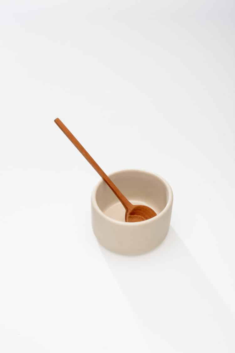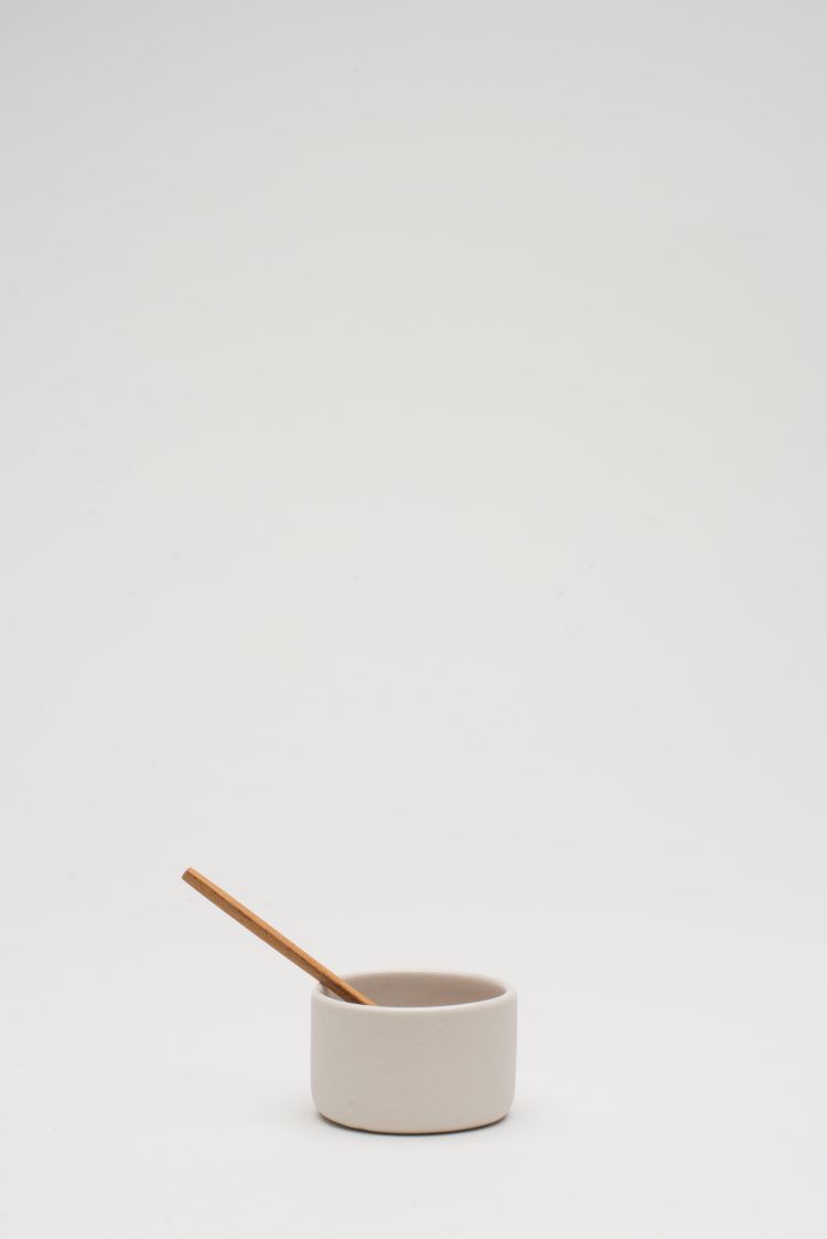Diminutive and delicate pottery salt cellar. Pairs beautifully with the teak spoon.